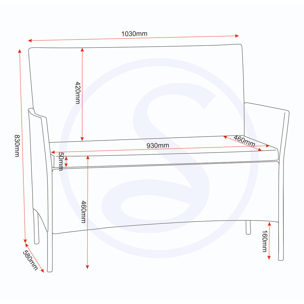 - Chair Seat Pad Size (two seater): W930 x D460 x H50 mm