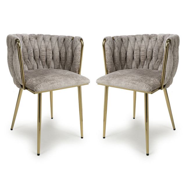 Chenille Effect Fabric Dining Chairs in Set Of 2 With Gold Metal Frame - Ontario