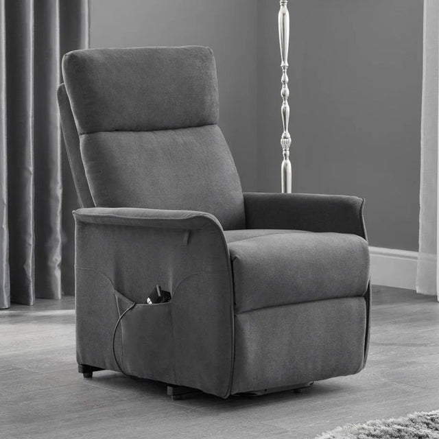 Experience ultimate comfort and support with the Helena Fabric Recliner Chair, available at CozyFurnitureDirect. Upholstered in a soft Grey fabric, this stylish rise and recline chair combines modern design with everyday practicality. Fitted with a smooth motorised mechanism, it effortlessly transitions between a gentle lift-out function and a comfortable recline position at the touch of a button - making it ideal for relaxation, improved mobility, and independent living. With its deep cushioning, quiet motor, and contemporary finish, the Helena chair is a versatile piece that complements a wide range of UK home decors.