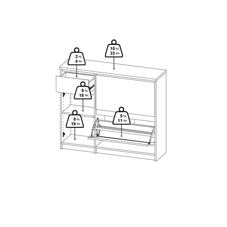 In stockRegular price £229.95Unit price /UnavailableWooden Shoe Storage Cabinet With 2 Flip Down Doors And 1 Door 1 Drawer - Naia