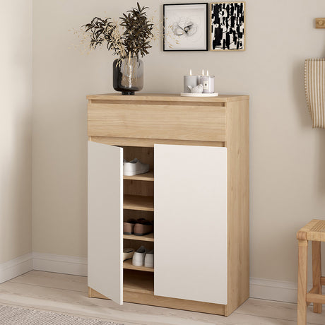 Wooden Shoe Storage Cabinet With 2 White Doors And 1 Drawer - Naia