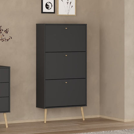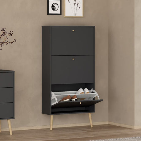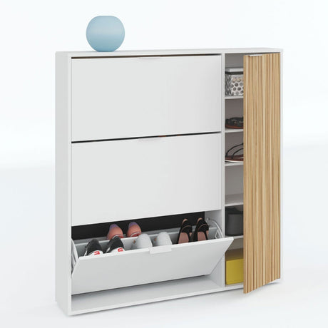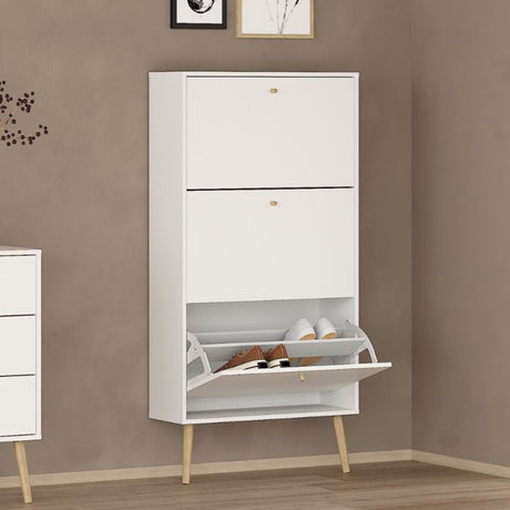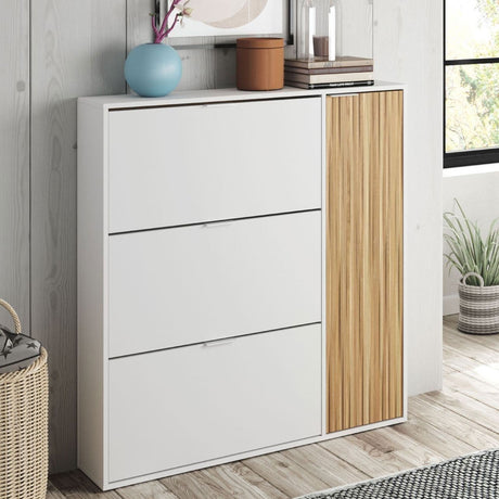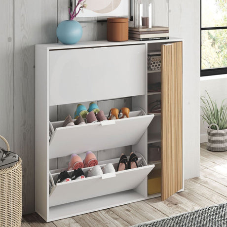 Wooden Shoe Storage Cabinet With 3 Flip Down Doors - Mitra