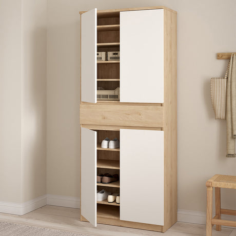 Wooden Shoe Storage Cabinet With 4 White Doors And 1 Drawer - Naia