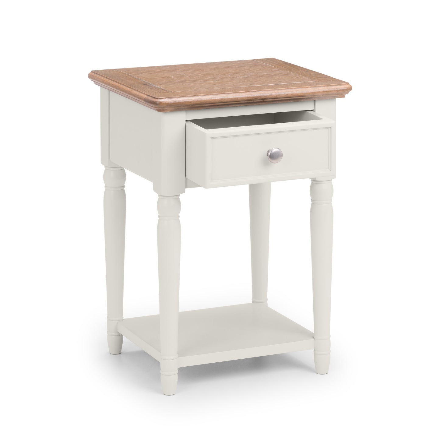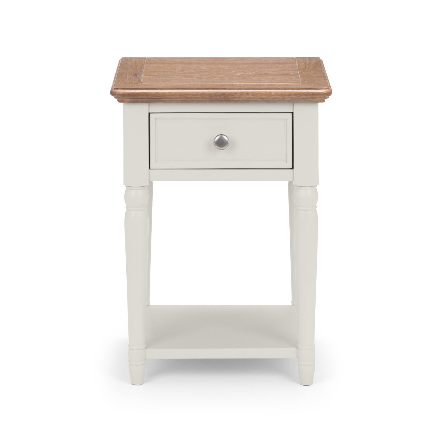 Bring classic elegance and practical storage into your home with the Provence Wooden Lamp Table With 1 Drawer, available exclusively at CozyFurnitureDirect. This timeless piece showcases an authentic antique-inspired design, featuring beautifully turned legs and a two-tone finish that blends grey lacquer with a limed oak effect top. Ideal for both modern and traditional interiors, the Provence lamp table adds a touch of sophistication to any living room, hallway or bedroom. It also includes a convenient drawer - perfect for keeping remote controls, magazines or small essentials neatly tucked away. As part of the Provence collection, it pairs beautifully with other matching pieces for a harmonious, stylish space.