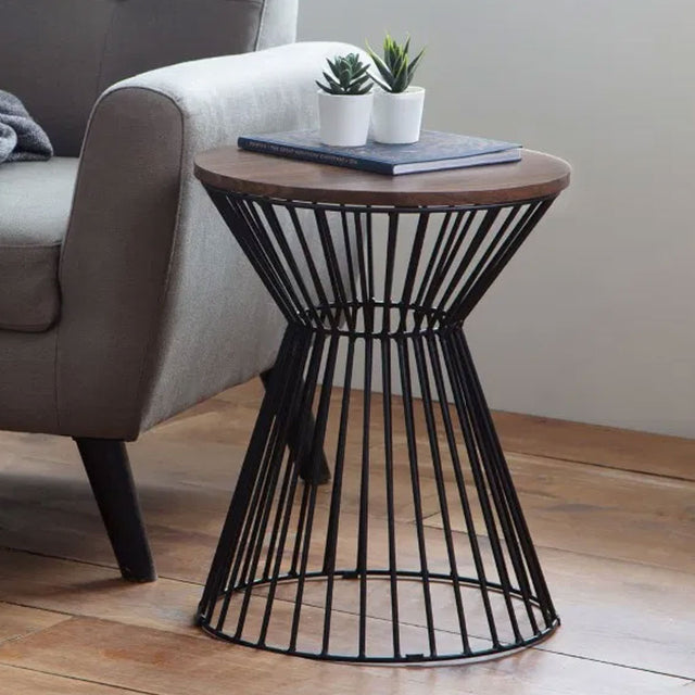 Wooden Lamp Table With Wire Frame Round - Jersey