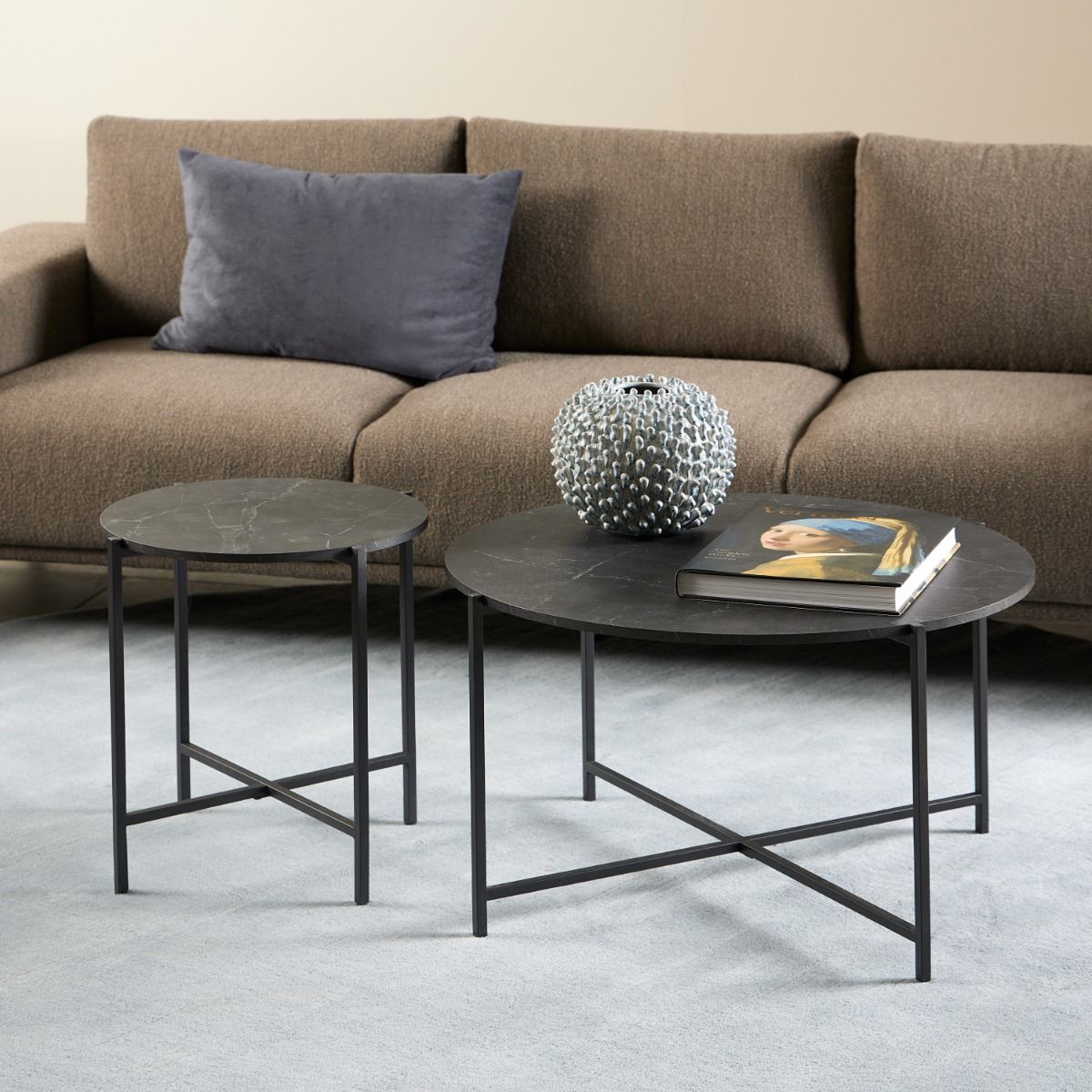 Bring French-inspired elegance and practicality to your home with the Wooden Round Side Table - Lamoine, available at CozyFurnitureDirect. Inspired by the French ideals of simplicity and refinement, the Lamoine side table elevates your room with understated charm while offering practical versatility for everyday living. Featuring a matt black Izmir melamine top with a subtle marble-look finish, this compact piece delivers luxury aesthetics without the maintenance of real stone. The powder-coated steel base provides durability and strength, while its slim silhouette keeps the design light and modern. Compactly sized at 40 cm wide by 45 cm high, the Lamoine fits effortlessly beside sofas, beds, or chairs, giving you the perfect surface for a lamp, plant, or cup of coffee. Lightweight, stylish, and sustainable, this elegant round table blends seamlessly into modern, minimalist, or industrial interiors, making it a versatile choice for homes across the UK.