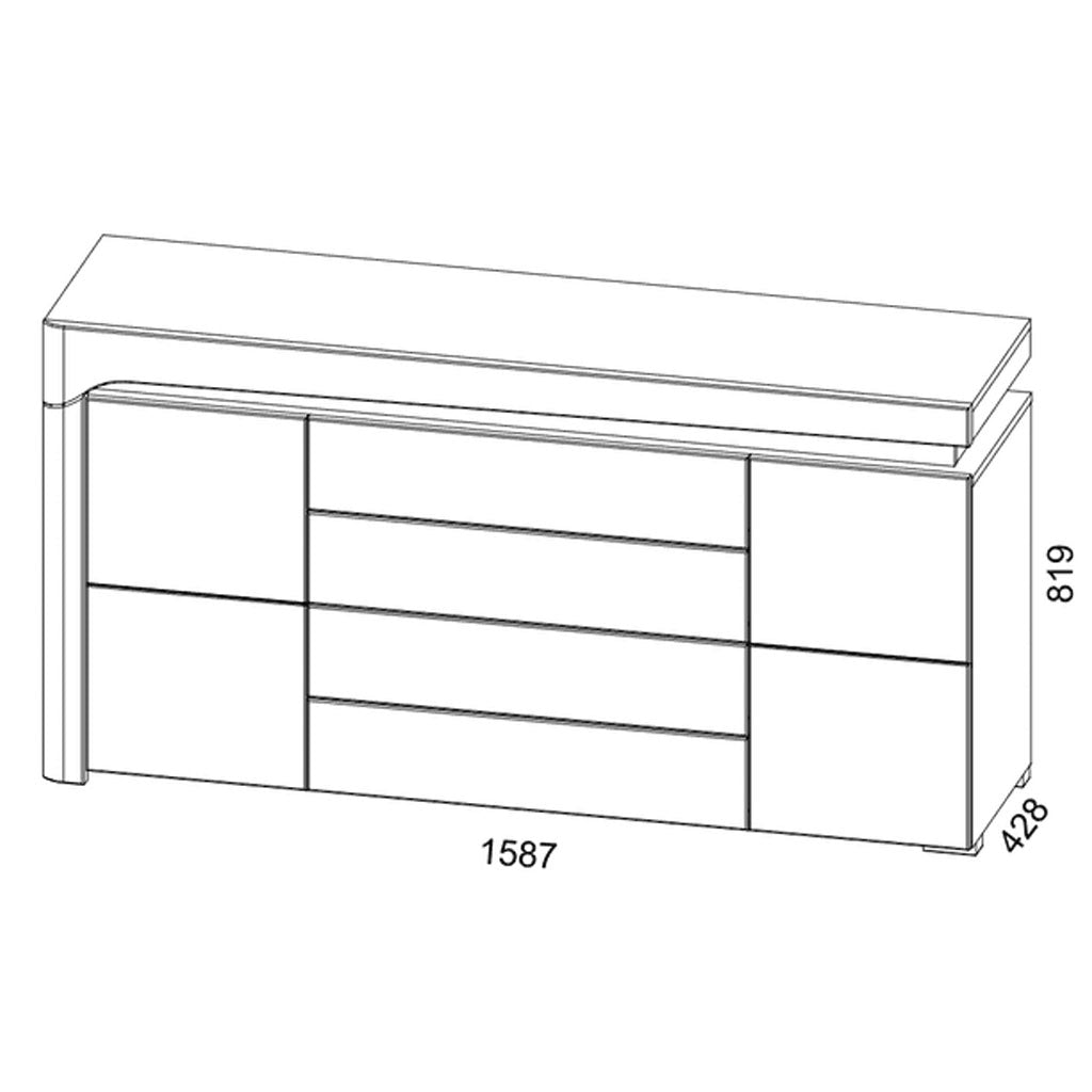 High Gloss Sideboard With 2 Doors 4 Drawers And LED Lights - Ashburn