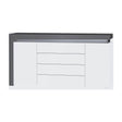 Illuminate your living or dining space with the High Gloss Sideboard With 2 Doors, 4 Drawers And LED Lights - Ashburn, available at CozyFurnitureDirect. This striking Athens sideboard features a sophisticated grey and white high gloss finish that brings modern elegance to any room. Offering ample storage through two-doors and four drawers, it combines style with practicality to help keep your space tidy and organised. The integrated LED lights add ambient illumination, enhancing the sleek design and creating a welcoming atmosphere. Measuring 81.9cm high, 158.7cm wide, and 42.8cm deep, the Ashburn sideboard is delivered flat - packed for convenient assembly, perfect for contemporary British homes.