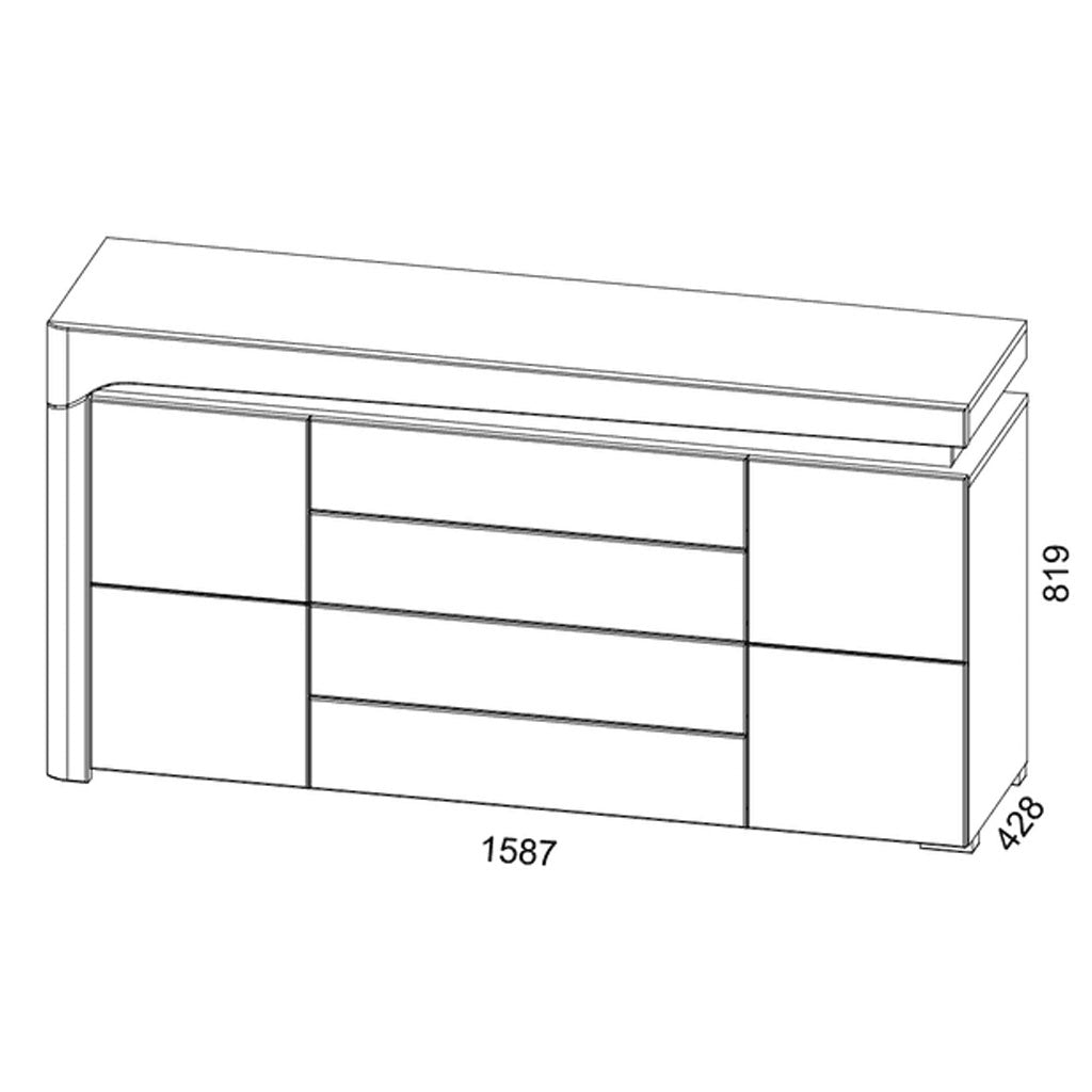 High Gloss Sideboard With 2 Doors 4 Drawers And LED Lights - Cedar