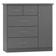 Organise your home with style and efficiency using the Nevada Wooden High board with 1 Door and 5 Drawers, available at CozyFurnitureDirect. This versatile high board features a contemporary design finished in a realistic 3D paint-effect veneer, blending seamlessly into both modern and classic UK interiors. The spacious cupboard stores clothing or household items, while five smooth-glide drawers—reinforced with robust metal runners and accented with modern metal handles—provide ample space for essentials. The composite board frame ensures durability, while the anti-tip strap delivers extra safety and peace of mind. A perfect addition for bedrooms or living spaces seeking clever storage without compromising on elegance.