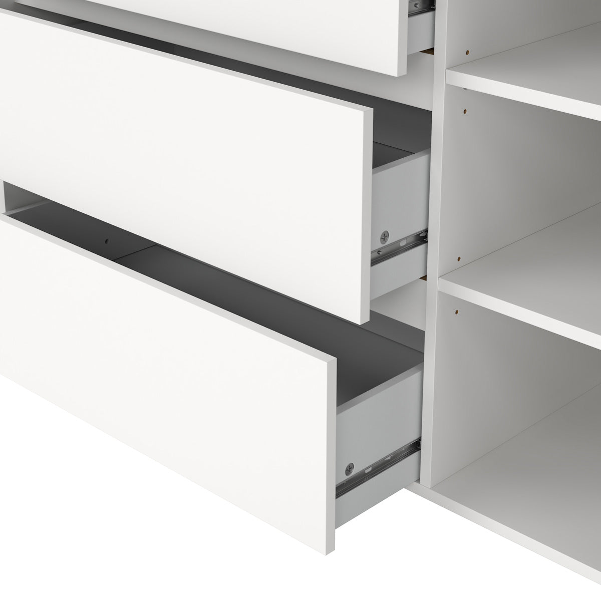 Enhance your home with the Wooden Sideboard with 1 Door and 3 Drawers - Next, available at CozyFurnitureDirect. With its Jackson Hickory oak-inspired frame and sleek white high-gloss fronts, this versatile sideboard combines warmth with modern elegance. Its compact design ensures a slim profile while still offering generous storage with one door concealing three shelves and three smooth-glide drawers for everyday essentials. Perfect for bedrooms, hallways, dining rooms, or home offices, the Next sideboard adds both practicality and sophisticated style, making it an ideal addition for modern UK interiors.