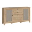 Bring timeless character and practical storage to your home with the Cestino Wooden Sideboard from CozyFurnitureDirect. Finished in warm Jackson Hickory with an eye-catching rattan - effect panel, this statement piece blends boho charm with Scandinavian simplicity, making it a versatile choice for both modern and classic UK interiors. Perfectly balancing style and function, the Cestino sideboard features two cupboards with internal shelving for concealed storage, and four spacious drawers on smooth full-extension ball-bearing runners - ideal for organising everything from tableware and glassware to household essentials. The soft-close door mechanism ensures gentle, quiet operation, while metal handles add a refined finishing touch. Crafted from moisture- and damage-resistant laminated board with durable MDF elements, this large sideboard is designed for everyday living. Its versatile size makes it equally suited to the living - room, dining area, home office, or bedroom, offering both generous storage and boutique - style elegance.
