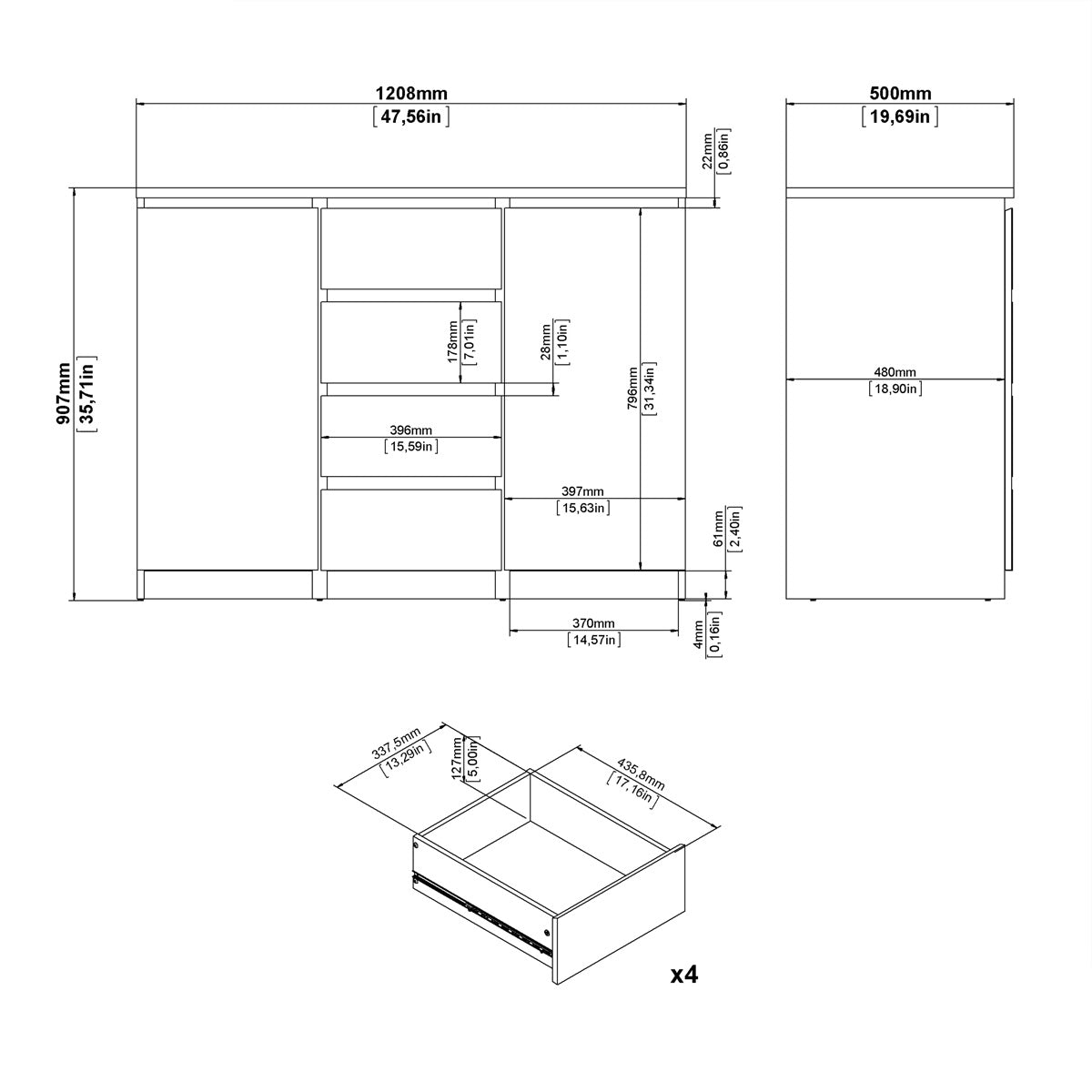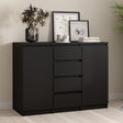 Organise your home in style with the Wooden Sideboard with 2 Doors and 4 Drawers - Naia, available at CozyFurnitureDirect. Perfect for modern living, this sideboard combines generous storage with sleek contemporary design. Finished in bold black matt, it features four spacious drawers with smooth-gliding runners and two-door compartments with adjustable hinges, making it a versatile solution for storing dinnerware, home accessories, or everyday essentials. Built from high-quality laminated board that resists scratches, moisture, and heat, the Naia Sideboard offers durability without compromising on style. Crafted in Denmark from PEFC-certified sustainable wood, it's an eco-friendly and timeless addition for UK homes.