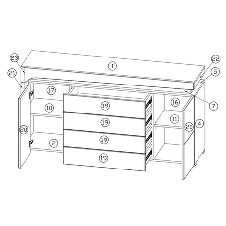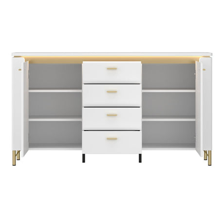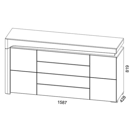 High Gloss Sideboard With 4 Doors 2 Drawers And LED Lights - Lazio