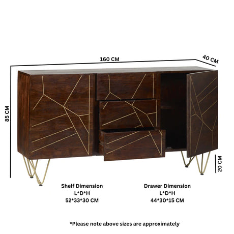 Regular price £549.95Unit price /Unavailable Solid Mango Wood Sideboard With 2 Doors And 3 Drawers - Dark Gold