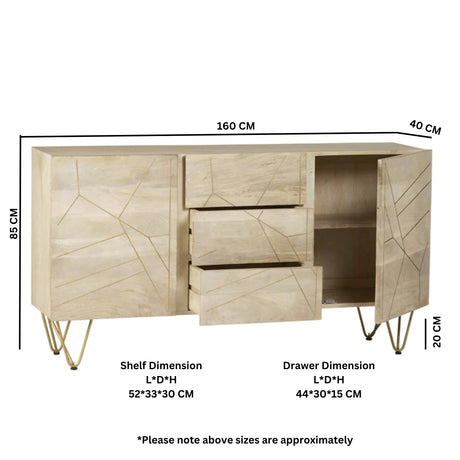 Regular price £479.95Unit price /Unavailable Solid Mango Wood Sideboard With 2 Doors And 3 Drawers - Light Gold