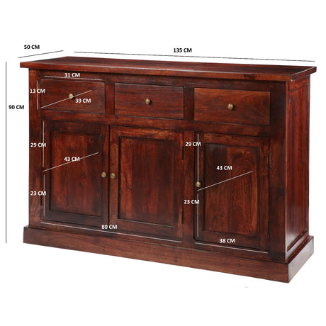 Solid Mango Wood Sideboard With 2 Doors And 3 Drawers - Edison