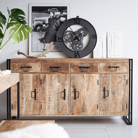 Solid Reclaimed Wood Sideboard With 4 Doors And 4 Drawers - Cosmo Industrial