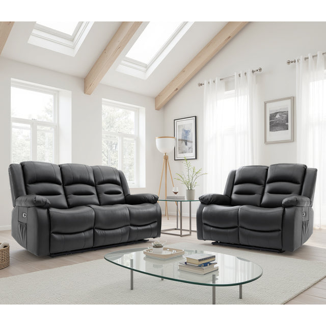 Refresh your living room with the Faux Leather 3 + 2 Seater Sofa Set Electric Recliner - Alva, available exclusively at CozyFurnitureDirect. Boasting stylish faux leather and advanced electric reclining technology, the Alva set brings spacious seating and modern practicality to UK homes. Each sofa features handy built-in conveniences including a drop-down table, cup holder and USB-C charging port, so you can sit back in comfort while keeping your essentials within reach. Ideal for families and guests, this coordinated set is designed for both luxury and everyday durability.