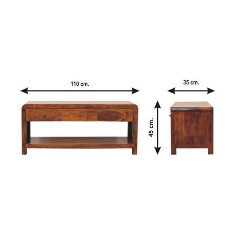 Solid Mango Wood TV Stand Rounded With 4 Drawers - Chester