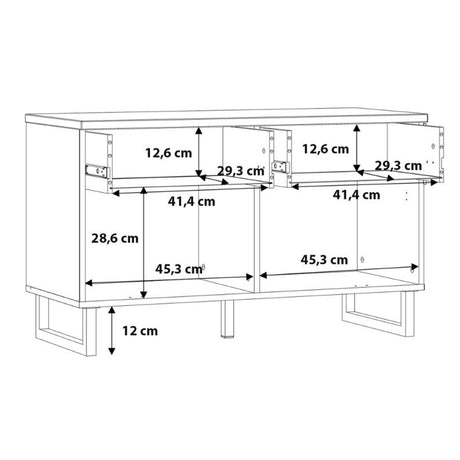 Solid Mango Wood TV Stand With 2 Drawers - London