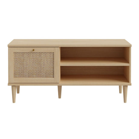 Wooden TV Stand With 1 Door And Rattan Effect Front - Calasetta