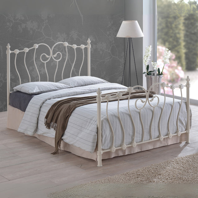 Enhance your bedroom with classic charm using the Inova Metal Double Bed Victorian Style with Sprung Slatted Base, available at CozyFurnitureDirect. Finished in a refined ivory colour and adorned with elegant decorative finials, this Victorian-inspired bed frame adds timeless sophistication to your home while offering strength and durability for everyday use. Its graceful design makes it the perfect focal point for both traditional and contemporary interiors. The sprung slatted base delivers reliable mattress support, promoting airflow and ensuring a comfortable, even sleeping surface. Combining elegance with practicality, the Inova is an excellent choice for UK homeowners looking for a stylish and functional centrepiece in their bedrooms.