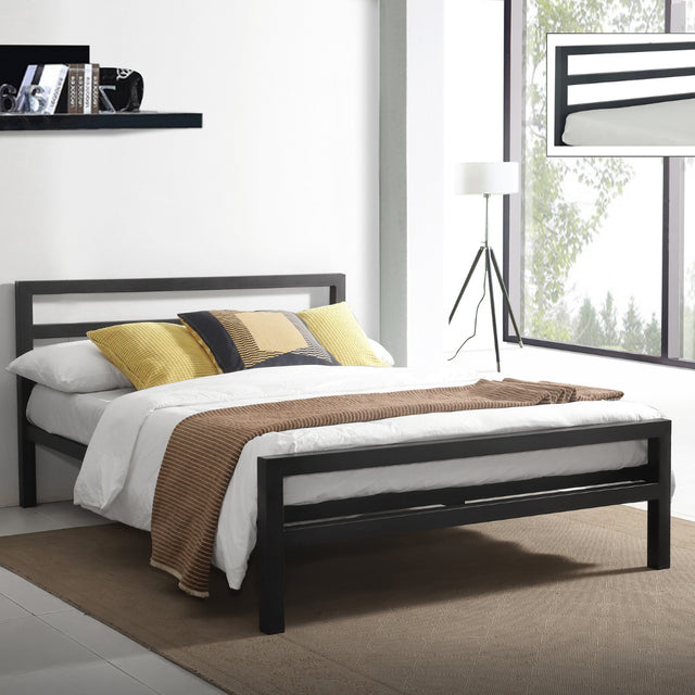 - Modern black metal frame with straight edges for a sleek, minimalist look