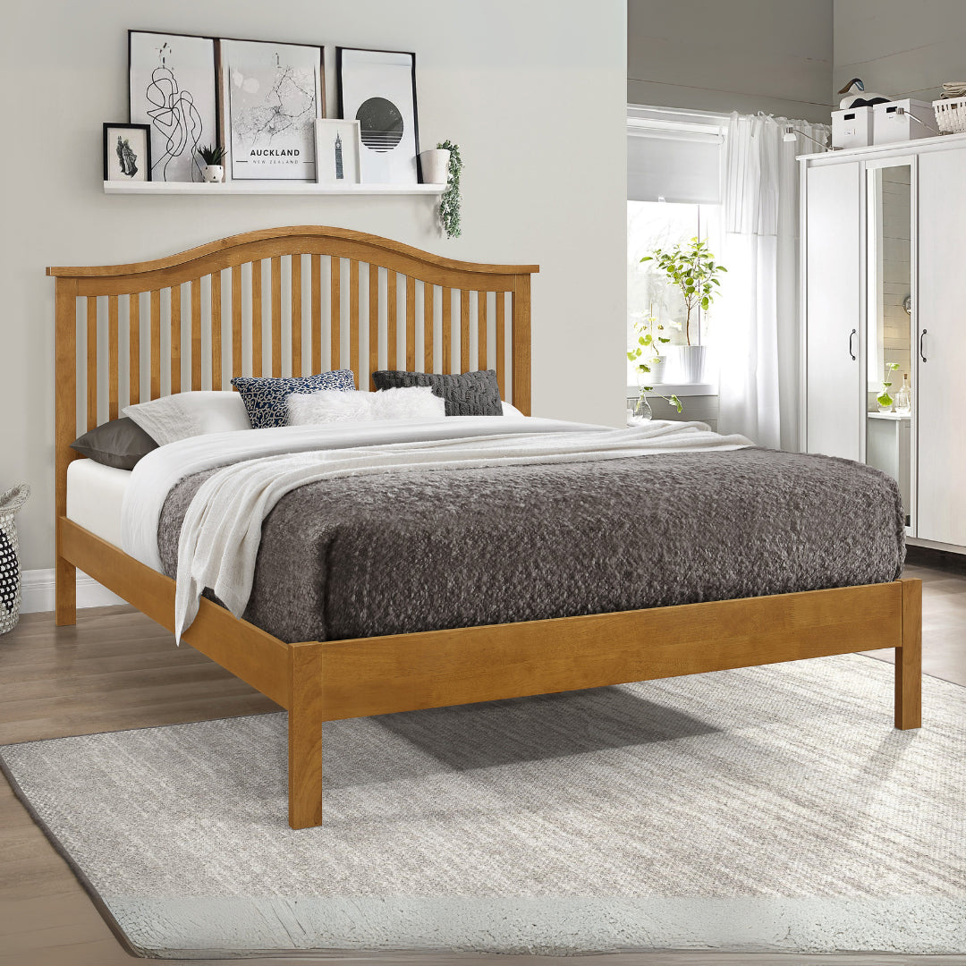 Add timeless beauty and durability to your bedroom with the Chester Wooden Double Bed with Sprung Slatted Base, available at CozyFurnitureDirect. Crafted from eco - friendly Hevea hardwood, this elegant frame combines traditional charm with subtle modern details, making it a versatile centrepiece for any home. The stylish curved headend enhances its classic appeal, blending effortlessly into both contemporary and traditional interiors. With its robust hardwood build and sprung slatted base, the Chester offers exceptional support and comfort. The slats ensure even mattress support while promoting airflow, improving comfort and prolonging mattress life. Ideal for master bedrooms or guest rooms, this double bed provides a perfect mix of sophistication, strength and long - lasting quality.