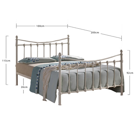In stockRegular price £249.95Unit price /UnavailableMetal Single Bed Victorian Style With Sprung Slatted Base - Florida