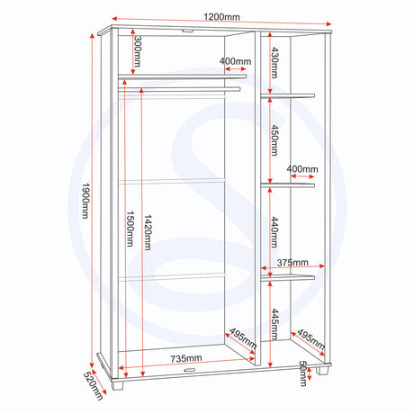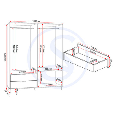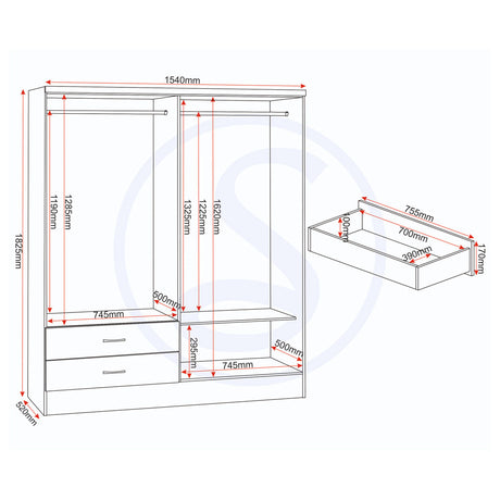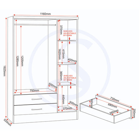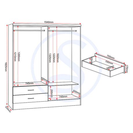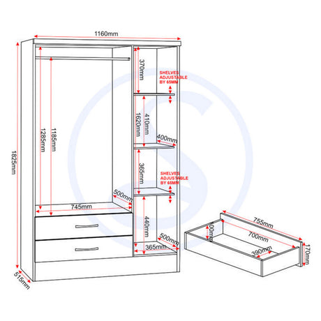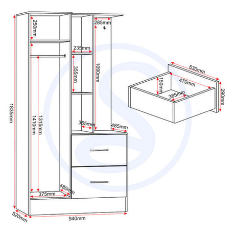 Mirrored Wardrobe With 1 Doors 2 Draw…