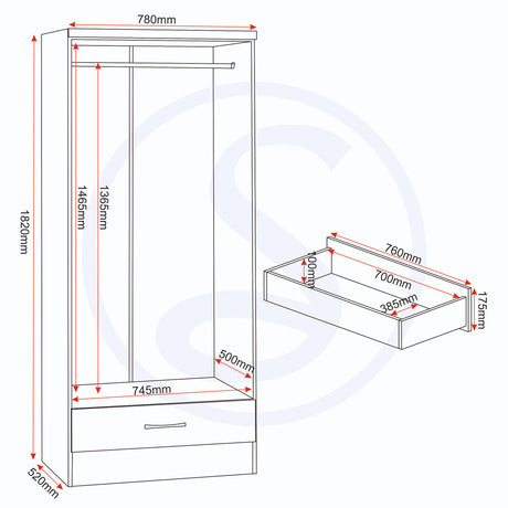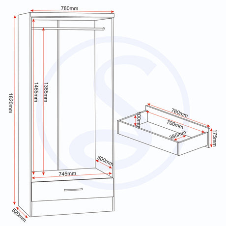 Wooden Wardrobe With 1 Door And 1 Dra…