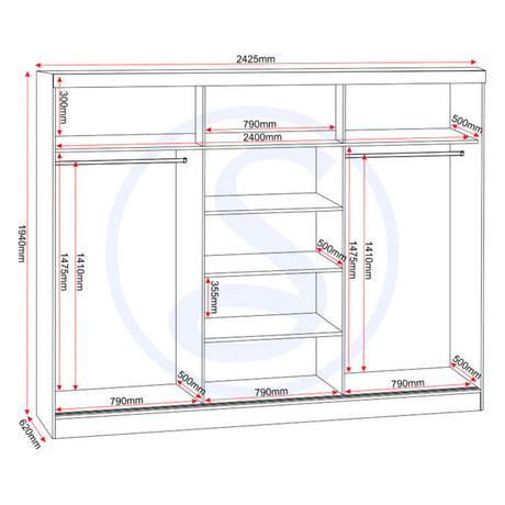 Mirrored Wardrobe With 3 Doors 2 Draw…