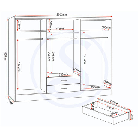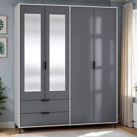 Mirrored Wardrobe With 4 Doors 2 Draw…