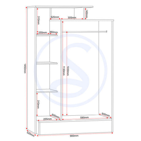 Wooden Wardrobe With 2 Doors And 1 Dr…