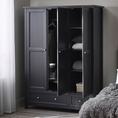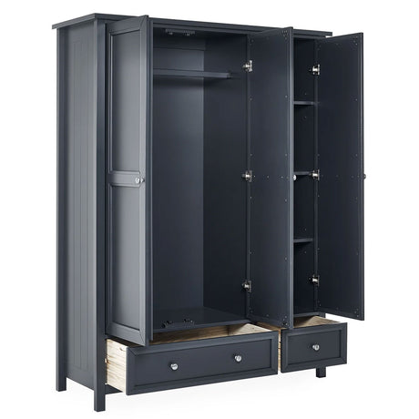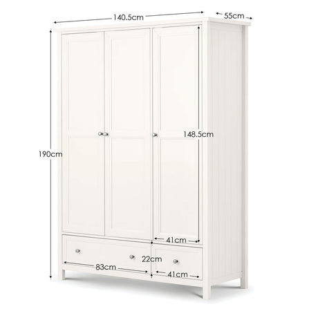 Wooden Wardrobe With 3 Doors And 2 Drawers - Maine