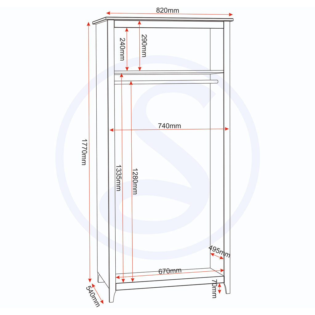 - Spacious hanging area with sturdy pine hanging rail for coats and dresses