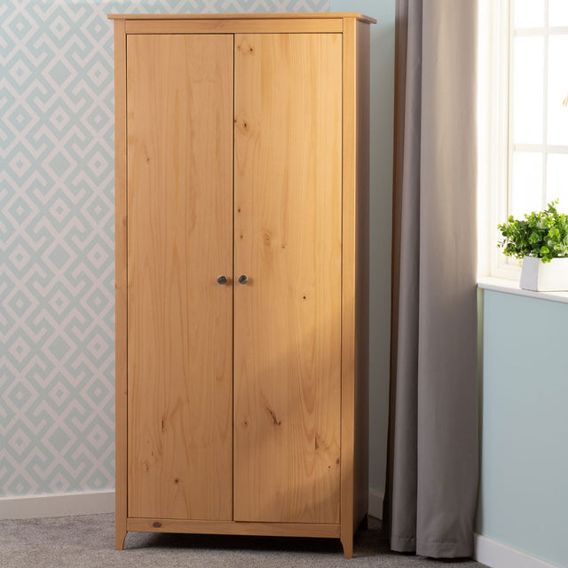 The Oslo Wooden Wardrobe with 2 Doors, available at CozyFurnitureDirect, is a beautifully crafted piece that combines timeless natural materials with functional design tailored for UK homes. Made from solid pine and complemented by sturdy MDF back panels and drawer bases, this wardrobe offers lasting durability and classic appeal. The spacious interior features a wide hanging area with a pine hanging rail, complemented by a generous shelf space to accommodate your folded clothes, shoes, or accessories. Designed with traditional craftsmanship and modern practicality in mind, the Oslo wardrobe is finished with quality metal handles and supported on pine feet to provide stability and protect your floors. Its compact yet roomy design suits a variety of bedroom sizes and styles, making it a versatile and attractive storage solution.