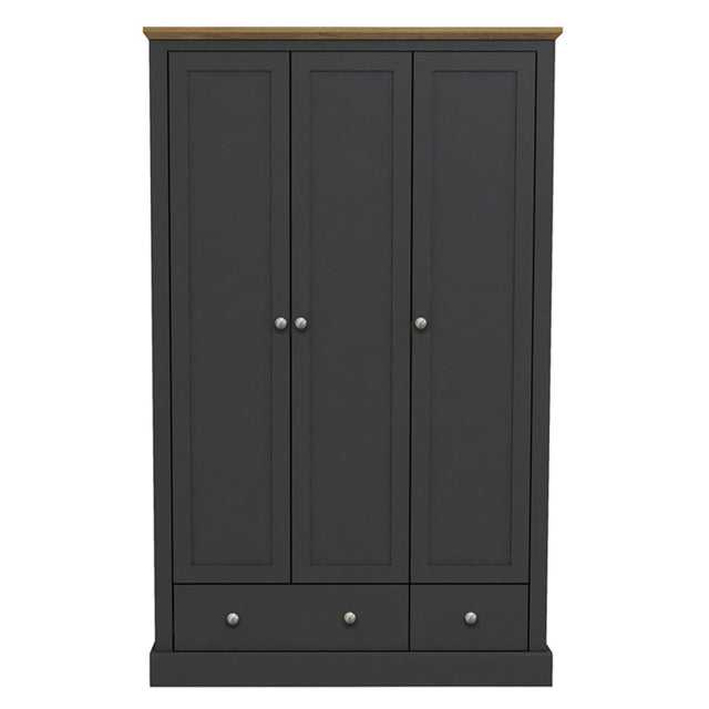 Wooden Wardrobe With 3 Doors And 2 Drawers - Devon