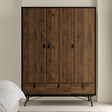 Add timeless style and generous storage to your home with the Ry Wooden Wardrobe, available at CozyFurnitureDirect. Featuring a contemporary matt black walnut finish, this 3-door wardrobe with 3 drawers is designed to blend sophistication with everyday practicality. Its spacious interior provides ample hanging and folding storage, while soft-close mechanisms on both doors and drawers ensure a smooth, silent operation. Sturdy angular metal legs enhance stability while embracing Danish design aesthetics, making this a perfect addition for modern UK bedrooms and living spaces.