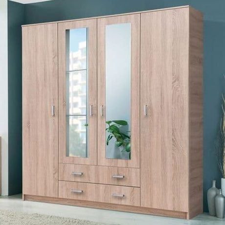 Wooden Wardrobe With 4 Doors And 2 Drawers - Middleton