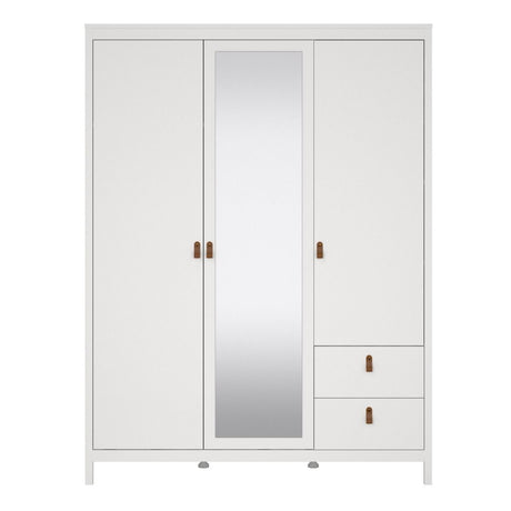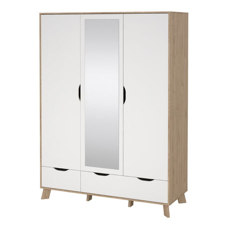 Mirrored Wardrobe With 3 Doors And 2 Drawers In White Fronts - Ikast