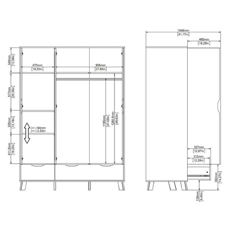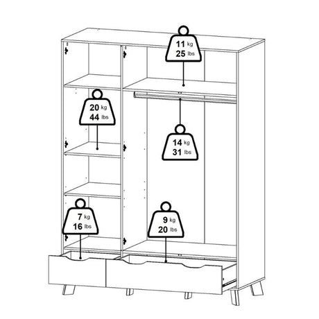 In stockRegular price £349.95Unit price /UnavailableWooden Wardrobe With 3 Doors And 2 Drawers - Brooklyn