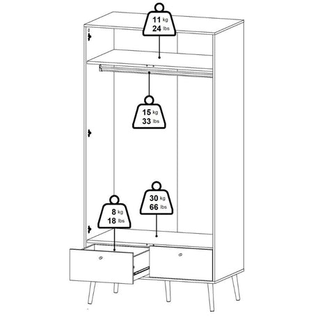 In stockRegular price £739.95Unit price /UnavailableWooden Wardrobe With 2 Doors And 2 Drawers - Brooklyn