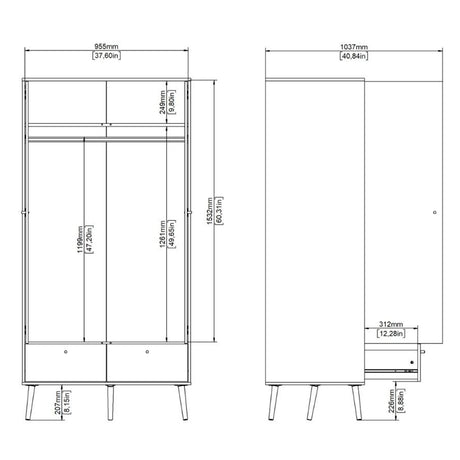 Wooden Wardrobe With 2 Doors And 2 Drawers - Darwin