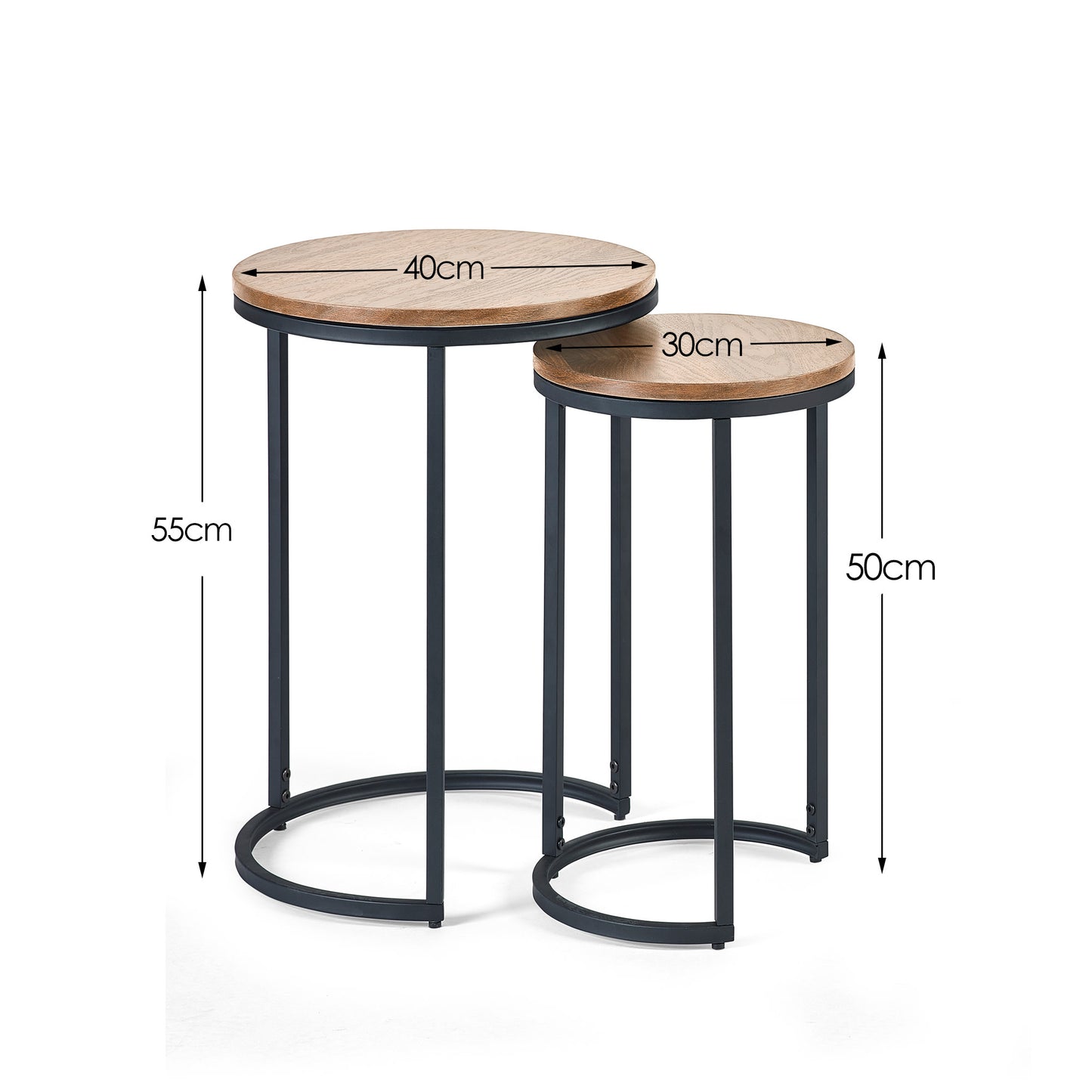 - Stylish set of two nesting tables with a modern industrial design
