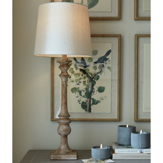 Beige Linen Shade Table Lamp With Candlestick Wooden Base - Pallido