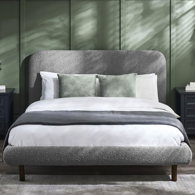 Transform your bedroom into a sanctuary of elegance with the Hannah Fabric King Size Bed, available at CozyFurnitureDirect. Upholstered in luxurious grey boucle, this bed combines contemporary style with timeless comfort. The soft, tactile fabric offers a warm and inviting feel, while the gracefully curved silhouette creates a striking profile, giving your bedroom an effortlessly modern edge. More than just a functional centrepiece, the Hannah bed adds a layer of opulence and sophistication, making it the perfect choice for UK homes seeking both comfort and design excellence.
