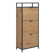 Keep your hallway neat and stylish with the Seaford Wooden Shoe Storage Cabinet with 3 Flip Down Doors, available at CozyFurnitureDirect. Combining a matte black steel frame with wild oak effect drawers, this modern cabinet offers both practicality and industrial flair. Each flip down door opens to reveal two sections, providing organised storage for multiple pairs of shoes while maintaining a clutter-free look. Compact yet spacious, this unit is the perfect choice for UK homes seeking a smart and elegant storage solution.