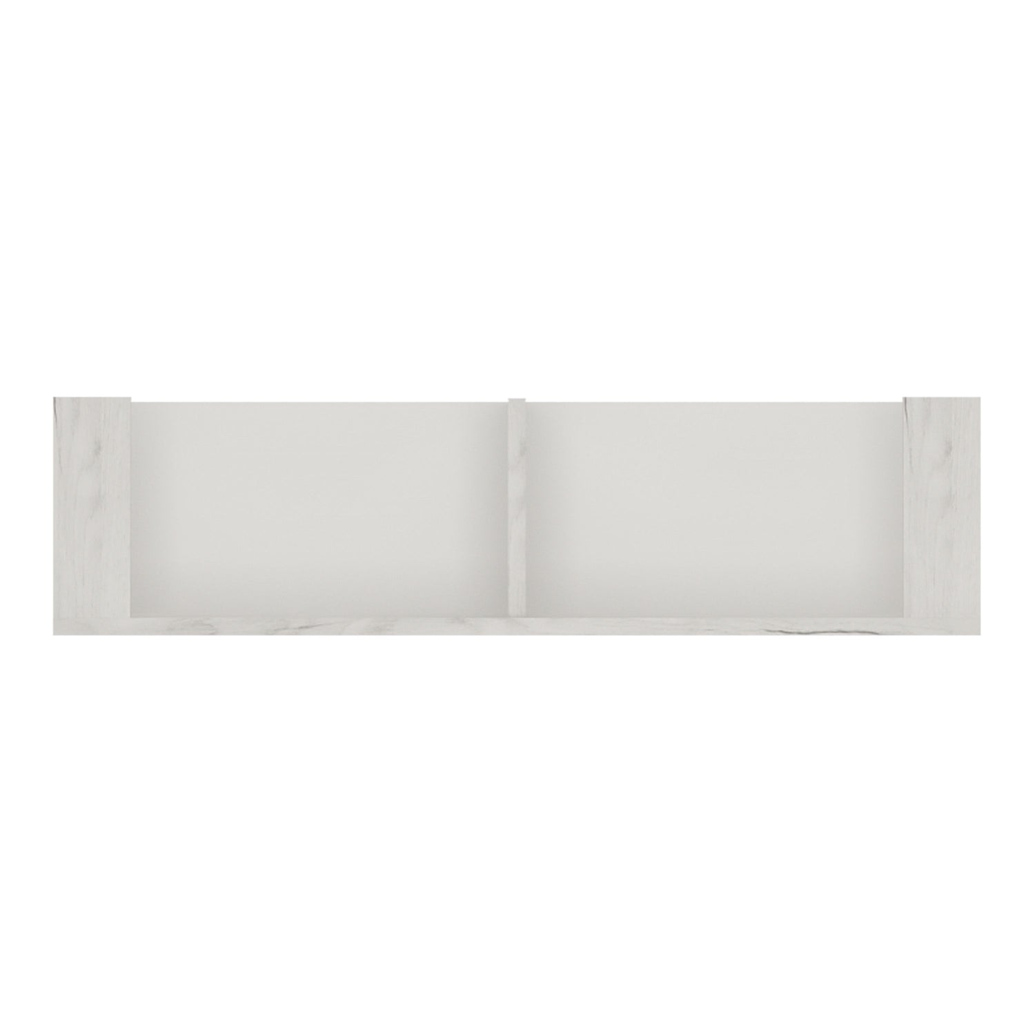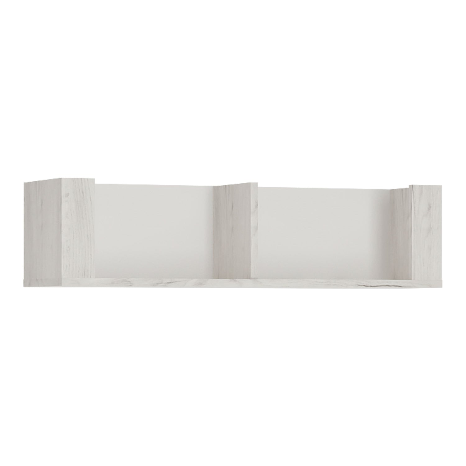 - Stylish 2-sectioned wall shelf finished in durable white crafted oak melamine